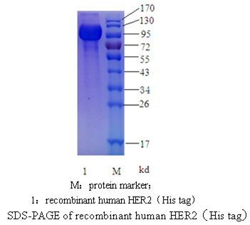 本公司生产的HER2是哺乳动物细胞来源的基因重组蛋白,纯度高,免疫原性好,生物活性高。